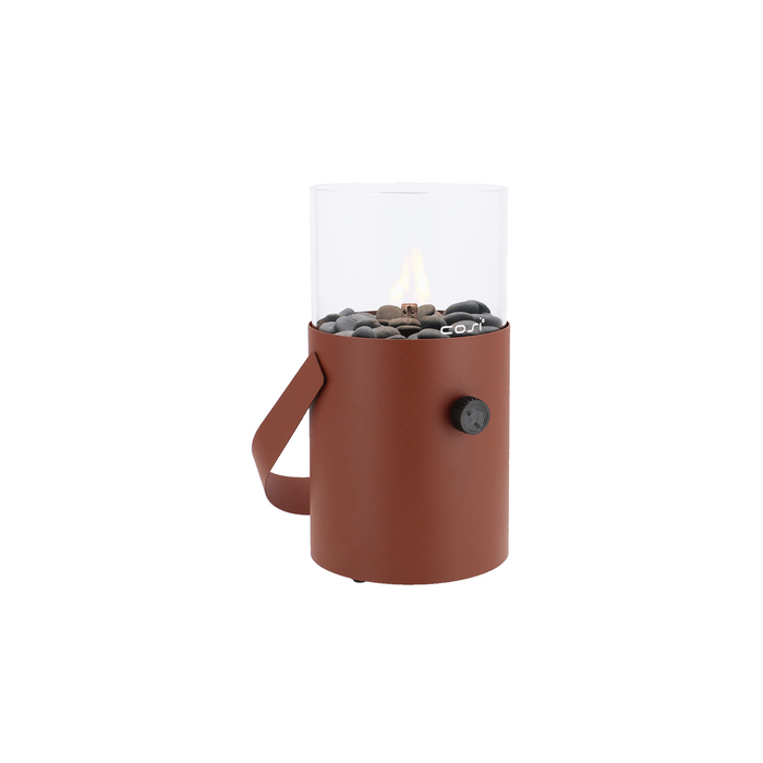 De Cosiscoop Original gaslantaarn in de kleur Terra brown is een stijlvolle en compacte sfeermaker voor binnen én buiten. Dankzij het stevige gepoedercoate aluminium en het transparante glas heeft deze tafellantaarn een moderne uitstraling die perfect past bij natuurlijke houttinten en diverse interieurstijlen. De decoratieve grijze kiezelstenen maken het geheel helemaal af.