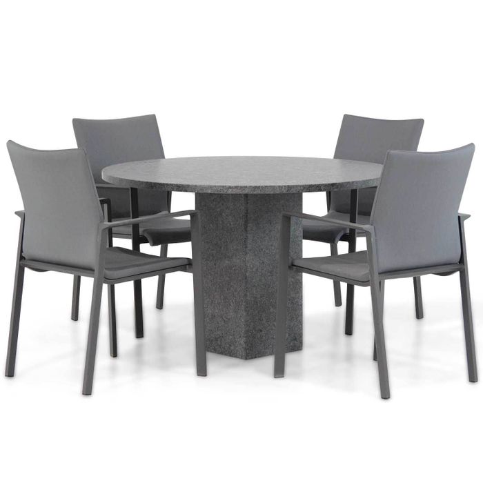 Lifestyle Rome/Graniet 120 cm rond dining tuinset 5-delig