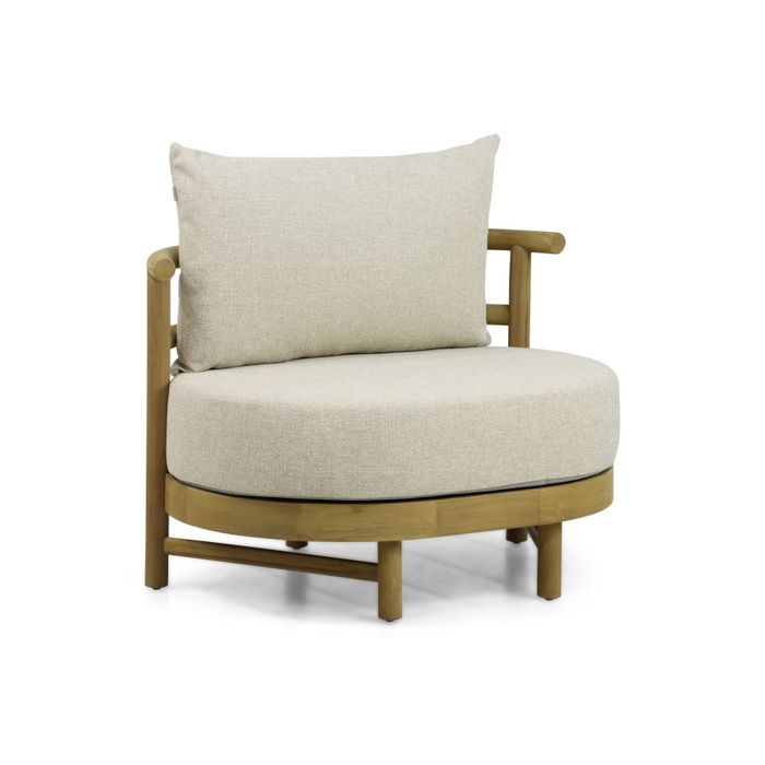 De Santika Kayu lounge tuinstoel is een stijlvolle en comfortabele toevoeging aan jouw buitenruimte. Net als de rest van de Kayu-serie is deze lounge tuinstoel volledig vervaardigd van hoogwaardig teakhout, wat zorgt voor een luxe, natuurlijke uitstraling en uitstekende duurzaamheid. Met zijn ronde ontwerp en ruime zit is deze stoel perfect om heerlijk in te ontspannen. Het hoogwaardige teakhout geeft de stoel niet alleen een tijdloze en warme uitstraling, maar is ook bestand tegen diverse weersomstandigheden. De royale zit van de Santika Kayu lounge tuinstoel wordt versterkt door zachte en comfortabele kussens, die perfect aansluiten bij het natuurlijke ontwerp van de tuinstoel. Deze kussens bieden niet alleen ultiem comfort, maar zijn ook weerbestendig en eenvoudig te reinigen. Combineer de Santika Kayu lounge tuinstoel met de bijpassende loungebank uit dezelfde serie om een stijlvolle en harmonieuze loungeset te creëren.